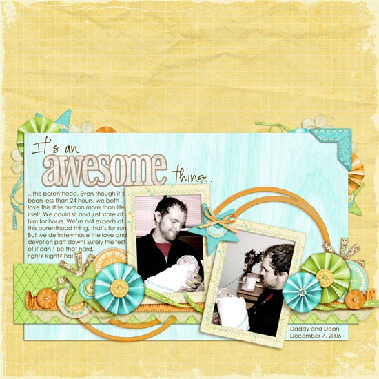 It's been a looooong time since I posted any digital scrapbooking layouts and I thought I'd share a few of the layouts I've been working on this summer. It's my goal to finish up Dean's first and 2nd year photobooks before the end of this year - so I have A LOT of scrapping to do in the next several months!! I've been doing a lot of baby pages lately with a few current layouts thrown in every now and then too in an attempt to not get too far behind on our current photobooks either. So anyway, here are some layouts - credits are listed below each layout. I'm not going to provide links for each product (that would just take way too long), but at the end of the post I'll provide a link to each of the stores where the products can be found - you should be able to do a quick keyword search at those stores and easily find any of the products you're interested in. Or if you have any trouble, feel free to leave me a comment and I'll help you out!!